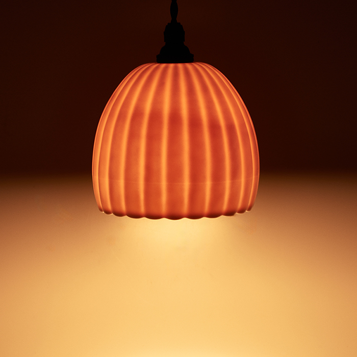 磁器で仕立てたペンダントランプです。