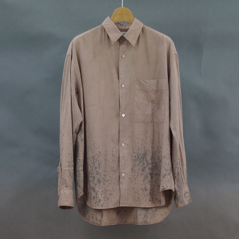 定番シャツに、奄美大島の泥はねをイメージした独自の染めを施した一枚。