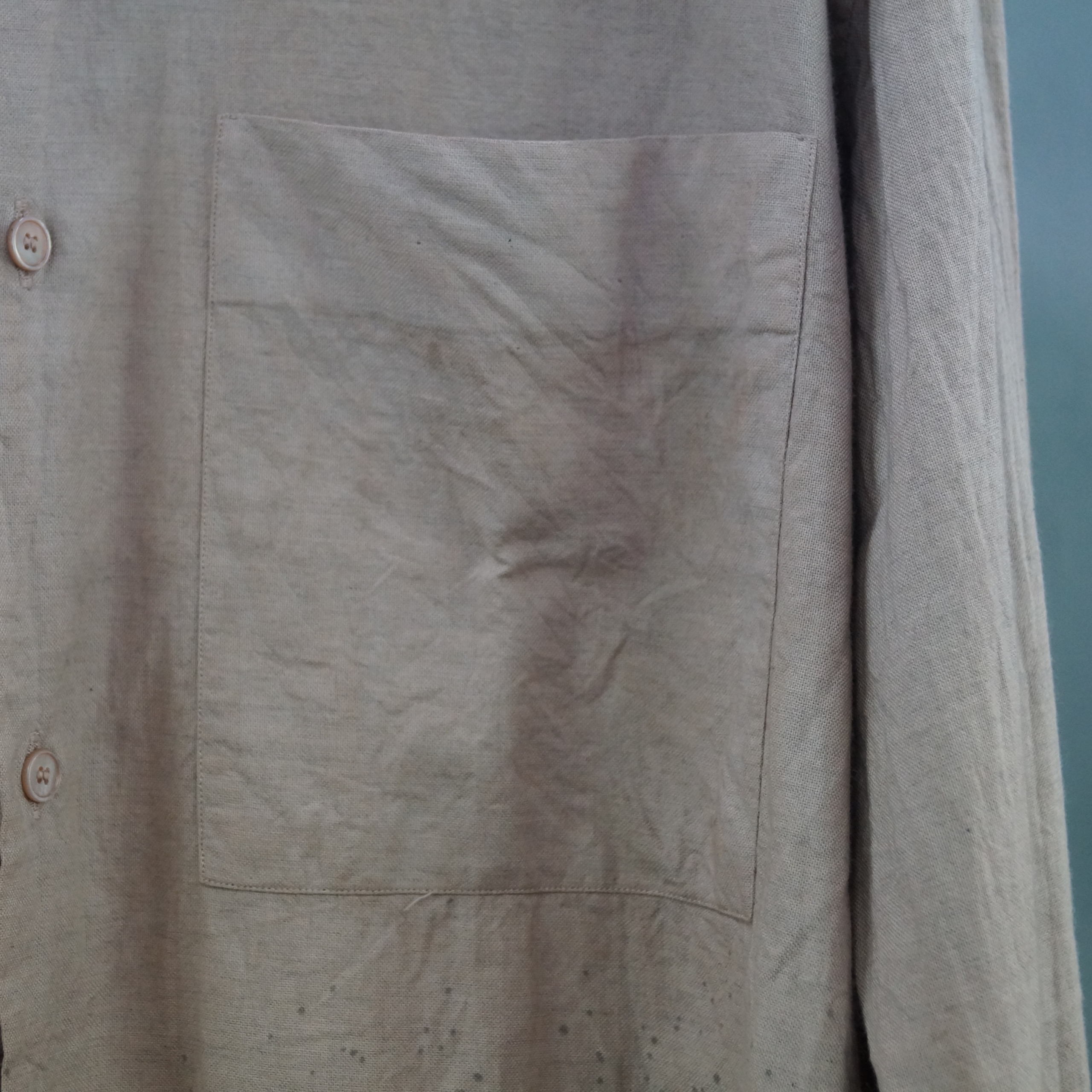 定番シャツに、奄美大島の泥はねをイメージした独自の染めを施した一枚。