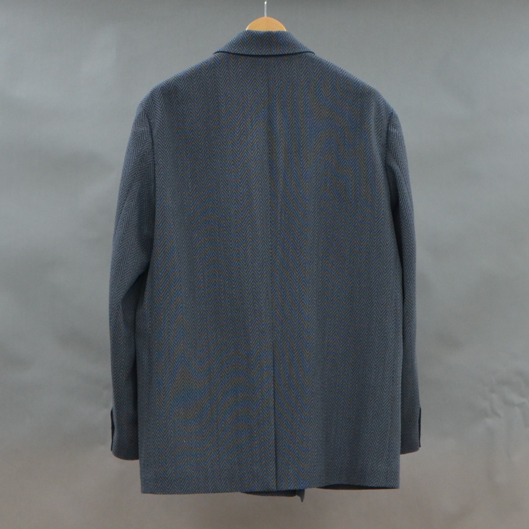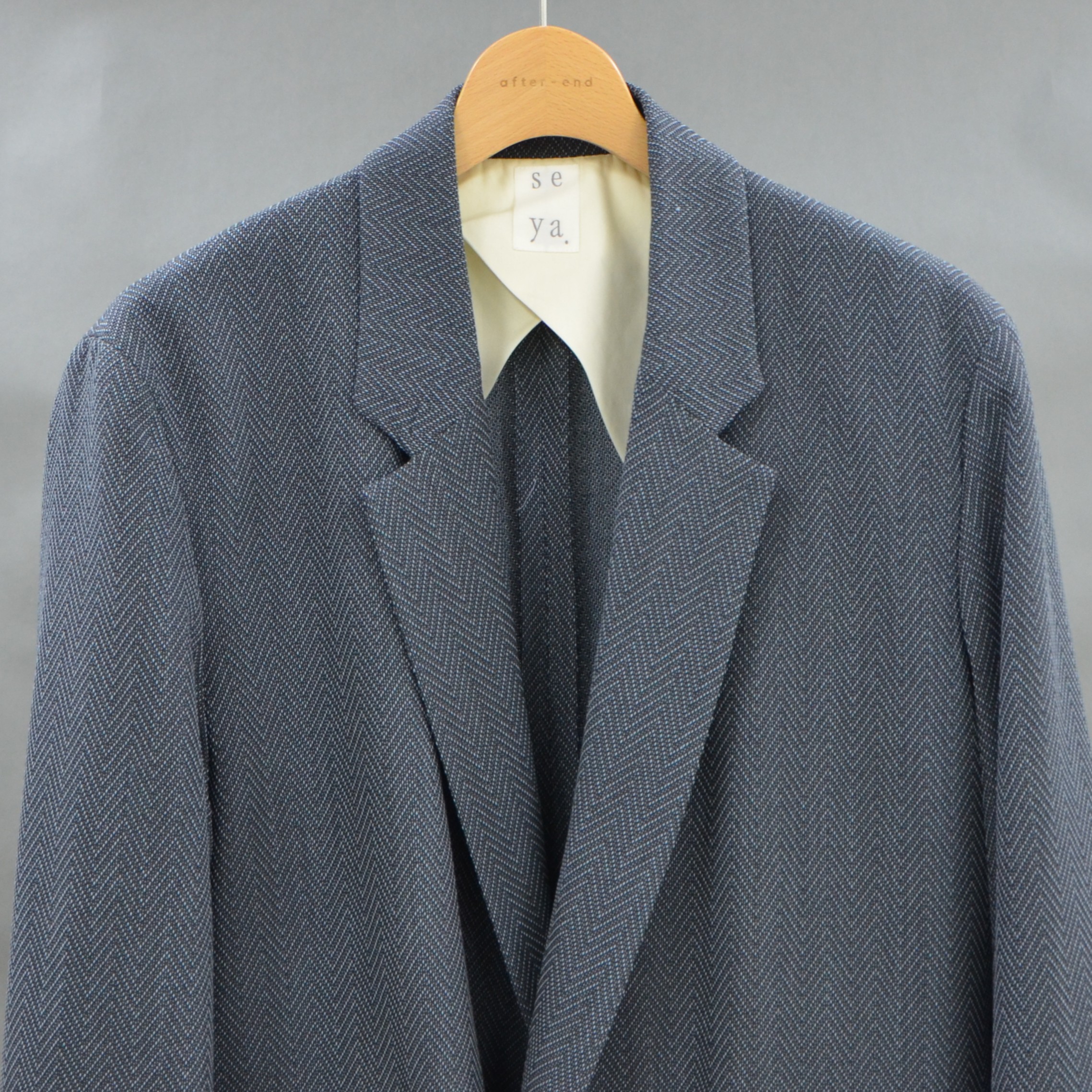 貝ボタンが上品なアクセントとなり、透け感のあるヘリンボーンサマーウール素材がその魅力をさらに高めます。