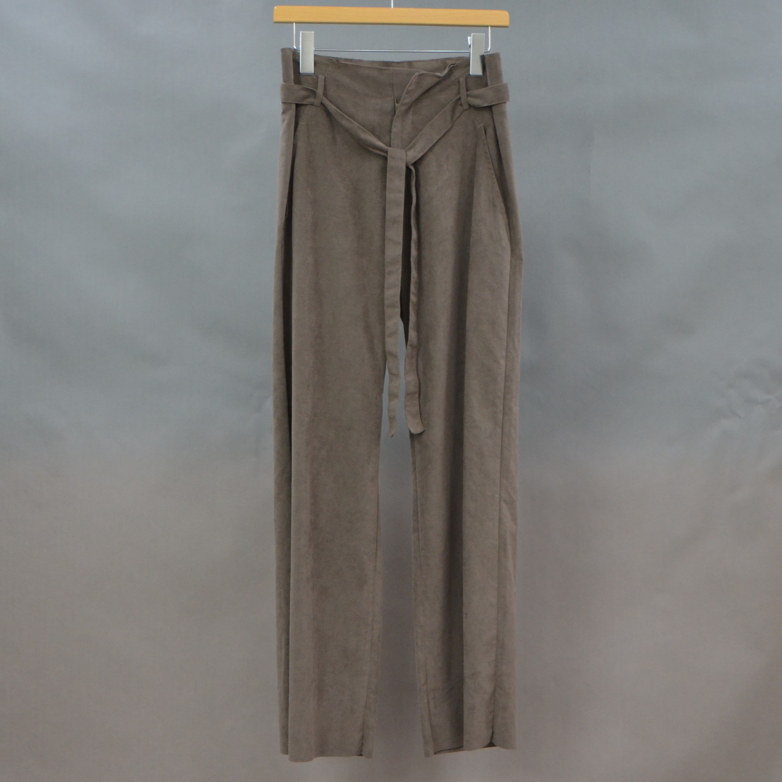 ウエストを紐で自在に調整できる、リラックス感のあるパンツ。