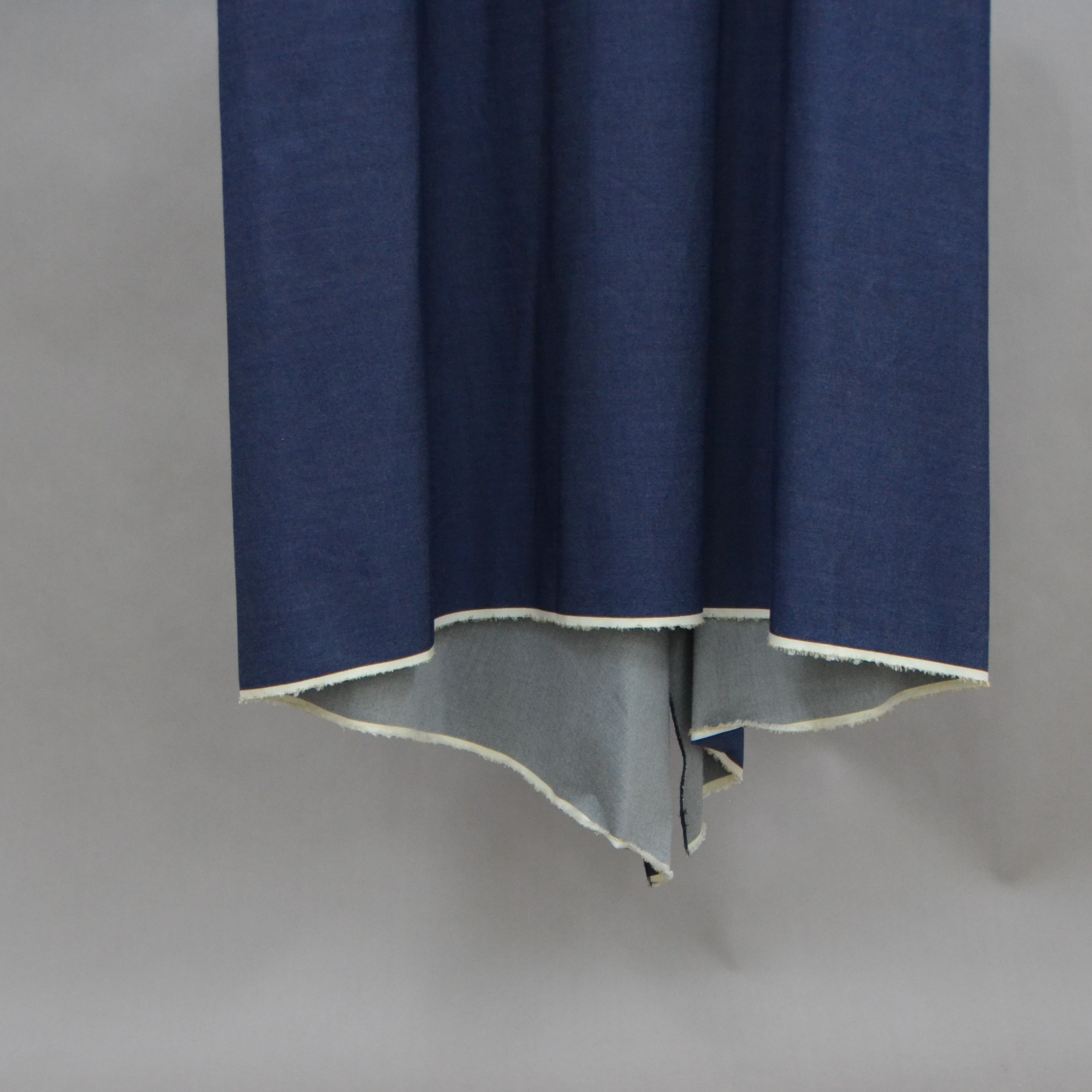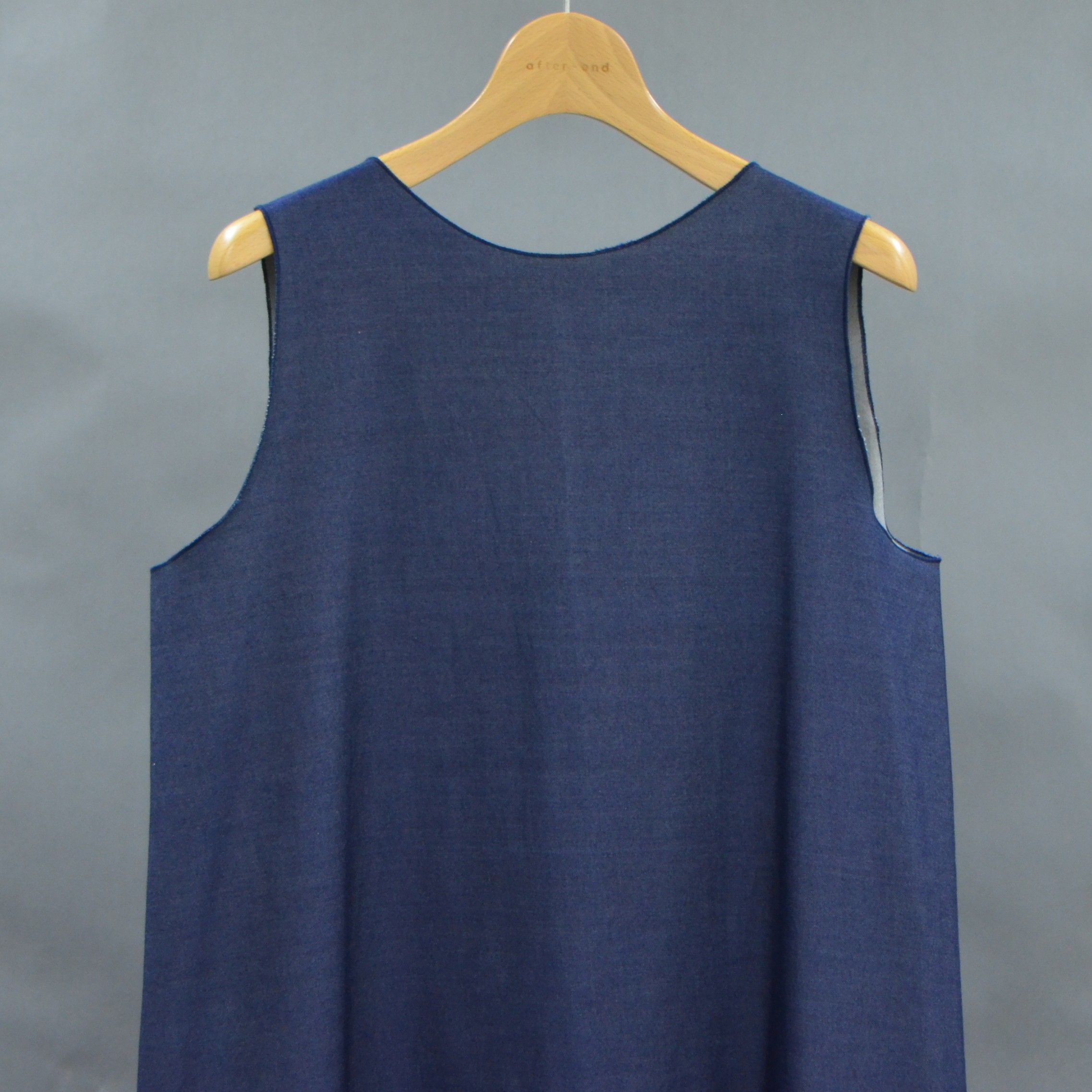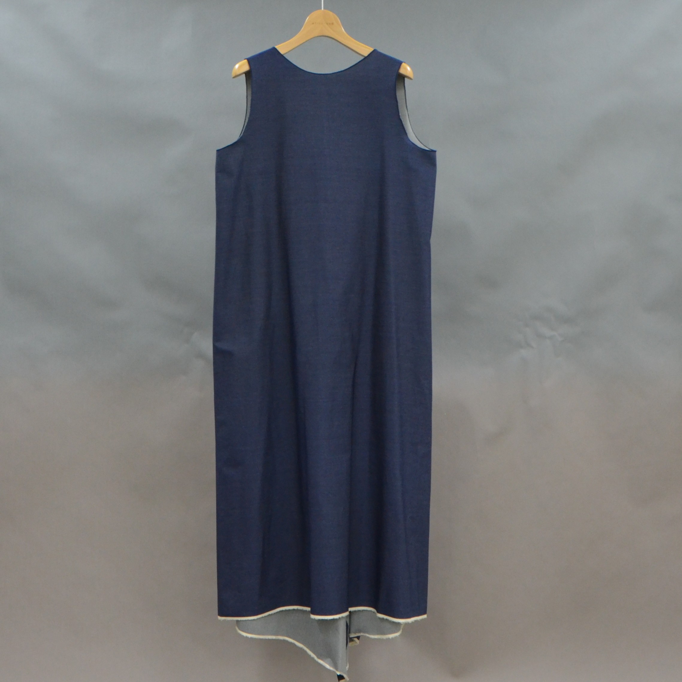 スーピマコットンを使用した薄く柔らかいデニム素材が、軽やかな動きと上品な艶感を演出するミニマルドレス。